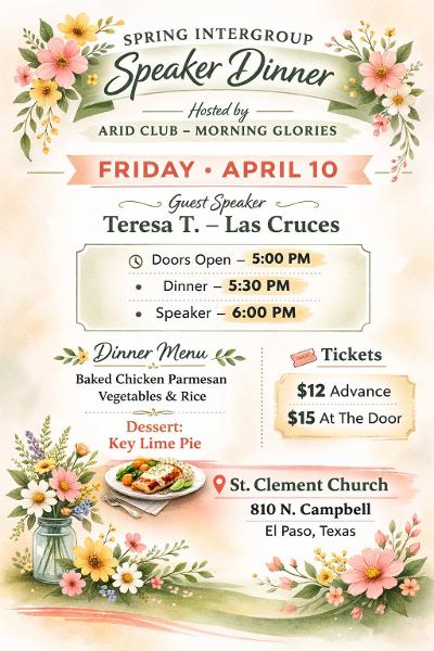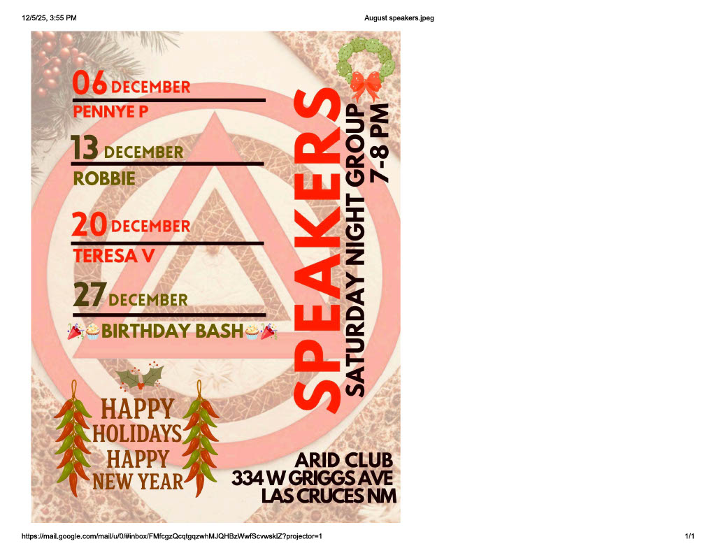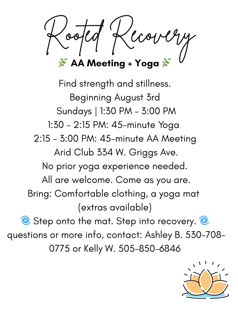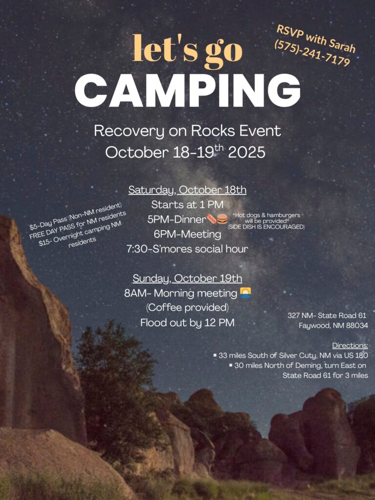 In person location: Our Lady of Guadalupe 3600 Paroquia St, Las Cruces, NM 88001 (The home of Sober at Sunrise)